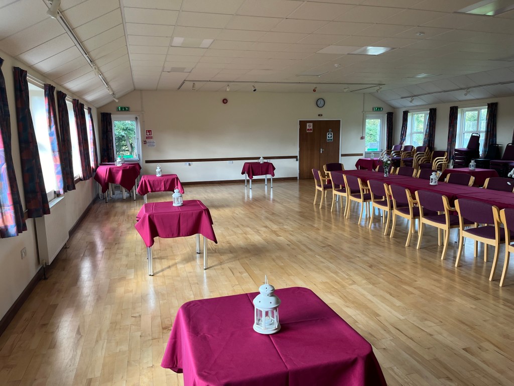 The Hall has adequate tables and chairs to support the maximum numbers of people allowed under its’ licence and this is included in the Hire charge. However, should seating be required for in excess of 200 persons, then the Management Committee reserve the right to agree a separate scale of charges.